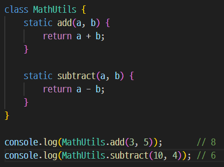 - static 키워드는 정적 프로퍼티와 정적 메서드를 정의하는 데 사용됩니다.