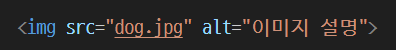 <img> 태그는 이미지를 삽입합니다. src 속성에 이미지 파일 경로를, alt 속성에 이미지 설명을 넣습니다.
