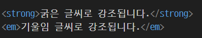 <strong>은 중요한 텍스트를, <em>은 강조하고 싶은 텍스트를 나타냅니다.