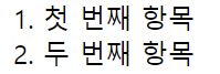<ol> 태그는 순서가 있는 목록을 만듭니다. 각 항목에 자동으로 번호가 매겨집니다.