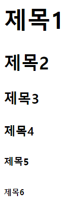 <h1> ~ <h6> 태그는 웹 페이지의 제목을 나타냅니다. <h1>이 가장 중요한 제목이며 <h6>으로 갈수록 중요도가 낮아집니다.