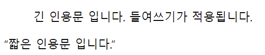 <blockquote>는 긴 인용문을, <q>는 짧은 인용문을 나타냅니다.