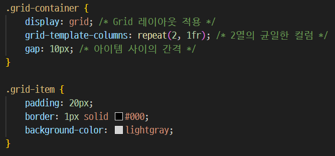 - grid-template-columns : 컬럼의 크기 설정