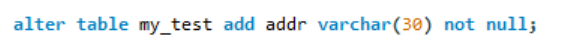 alter table 테이블명 add 컬럼명 자료형(길이) 제약조건;