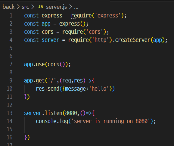 back 쪽 src 폴더의 server.js 생성